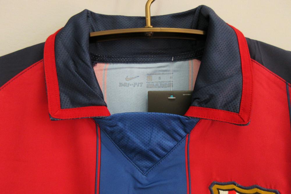 قميص برشلونة الكلاسيكي لموسم 2005/2006، بنسخته الجماهيرية الأيقونية. تصميم مستوحى من فترة ذهبية في تاريخ النادي، يتميز بألوان الأحمر والأزرق العميقة وخطوط عمودية كلاسيكية وشعار Nike باللون الذهبي المطرّز بدقة.