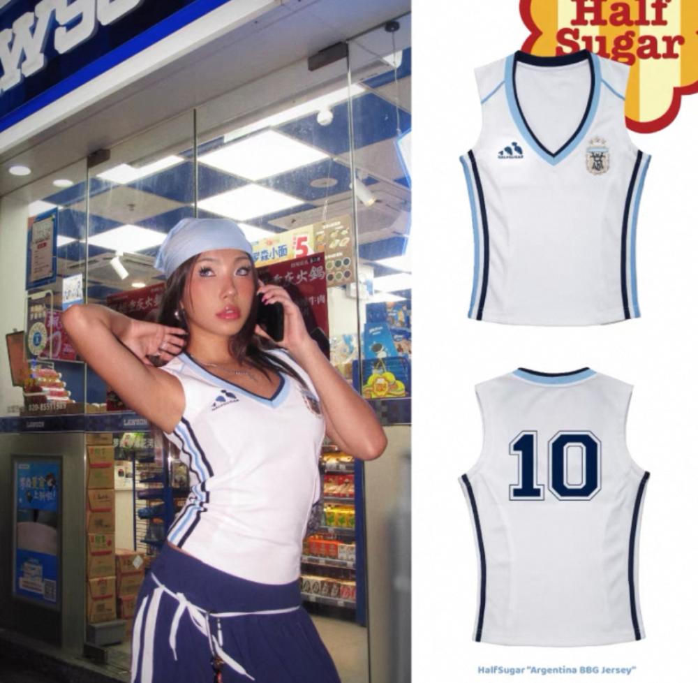 2. قميص منتخب الأرجنتين: تصميم أبيض أنيق بخطوط زرقاء ورقم 10.