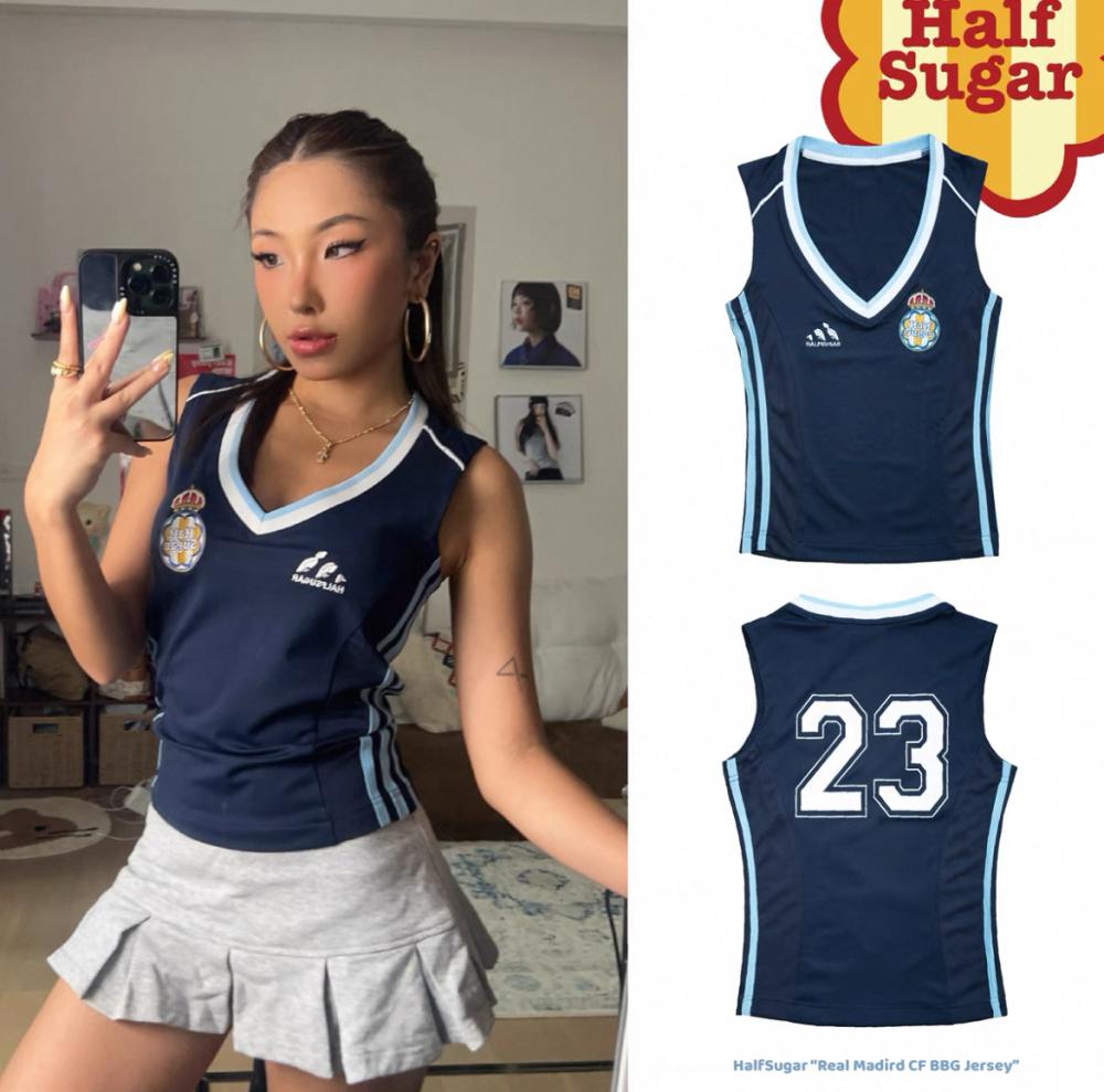4. قميص ريال مدريد: تصميم أزرق داكن بخطوط بيضاء ورقم 23 لعشاق النادي الملكي.