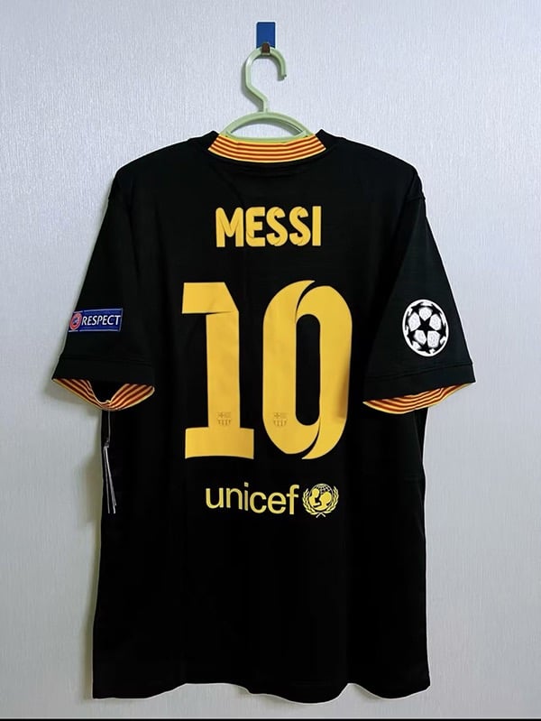 ارتدِ الفخامة الكتالونية مع تيشيرت برشلونة الاحتياطي لموسم 2013/2014، بتصميم أنيق باللون الأسود مع تفاصيل صفراء على الأطراف والياقة.