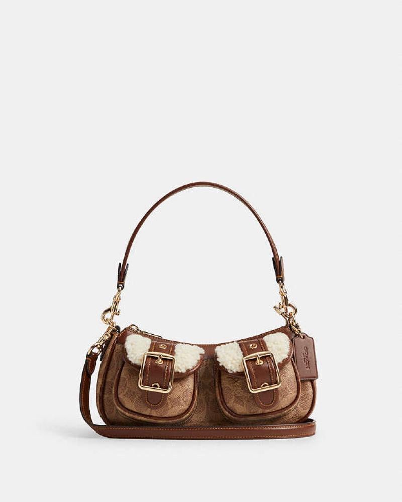 • Front pockets with luxurious metal accents and buckle closure for a modern and elegant look.