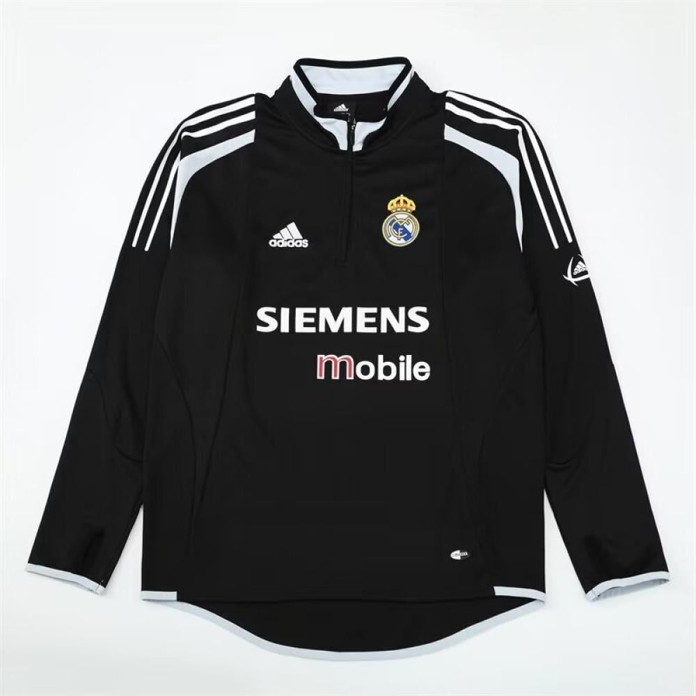 Adidas' Real Madrid Vintage Training Tops collection features distinctive retro versions worn by the team between 2003 and 2017. Featuring iconic designs and the logos of historic sponsors such as Siemens Mobile, bwin.com, and Fly Emirates, each piece embodies the identity of a golden era in the club's history.